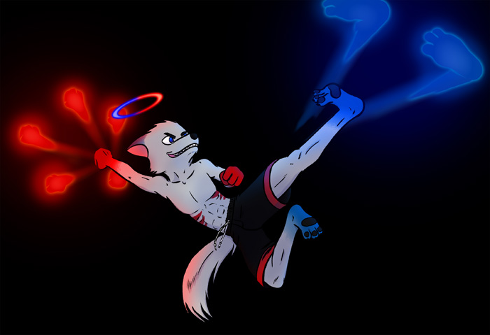 This was a commission for another DA buddy, Niloc1. That's his Dreamkeepers character, Argadious, showing off his power. Argadious is a tourney fighter whose powers activated during a deathly match, and he had to flee (powers use is illegal). He can create multiple holo-fists when he punches, and two holo-feet when he kicks to get a "tri-kick assault." I'm not gonna lie: those holo-fists and holo-feet were TOUGH to draw. But the result was actually satisfying, and in the end I learned a few new tricks and techniques.