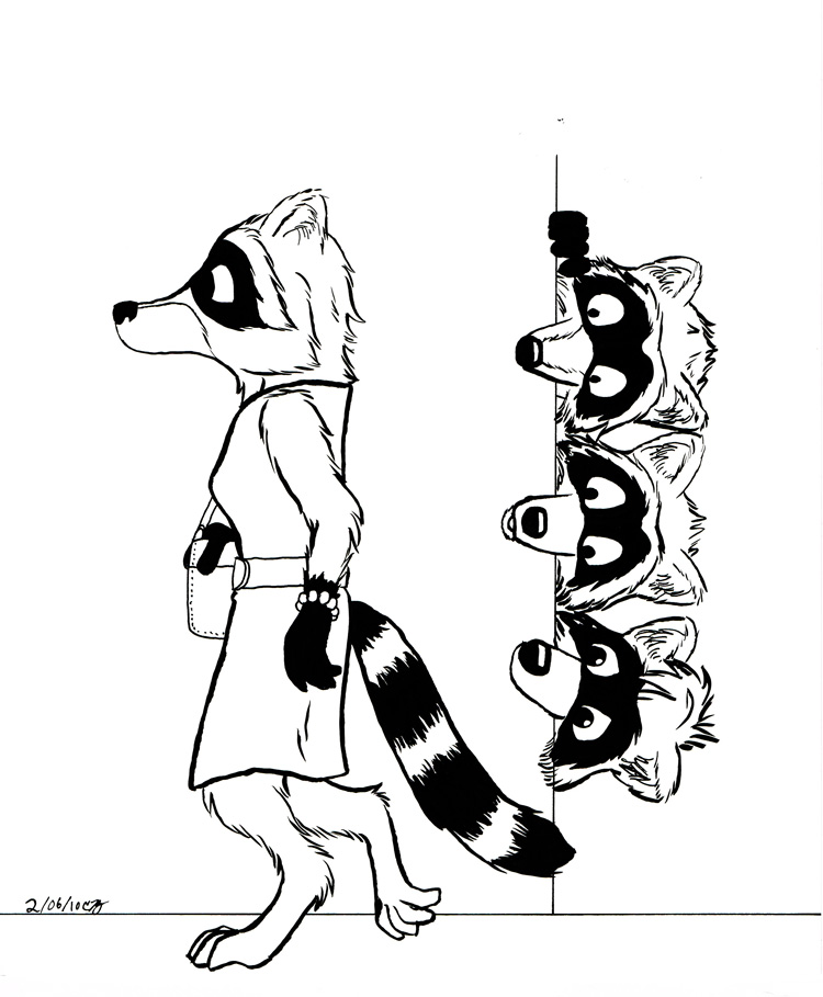 Admittedly, this is about as close as this series ever came to anything resembling "office romance." I honestly just wanted an excuse to show multiple raccoons poking their heads around a corner, and this worked just fine. And, I mean, come on... can you really tell me they aren't just adorable!?!?