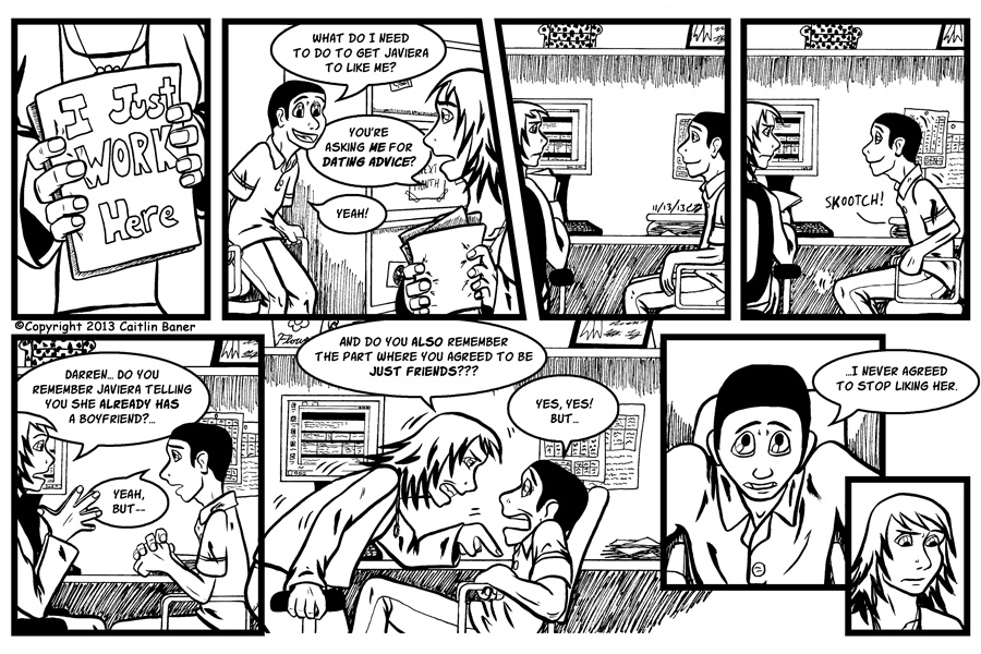 And we're back to the storyline! Unfortunately, due to the timing and length of this story arc it's gotten interrupted for Halloween, the 100th page, and in a few weeks it will get interrupted again for Christmas. I will of course be doing another full-color Christmas comic, then there will likely be the obligatory break the week after that, then we're off to the races for 2014! I've finished drafting this story arc, and am working hard on drafting the next story arc. Suffice to say there's been a LOT going on over here. Meanwhile, my cat is clawing at my leg to get me to pay more attention to him... I am a terrible pet owner.