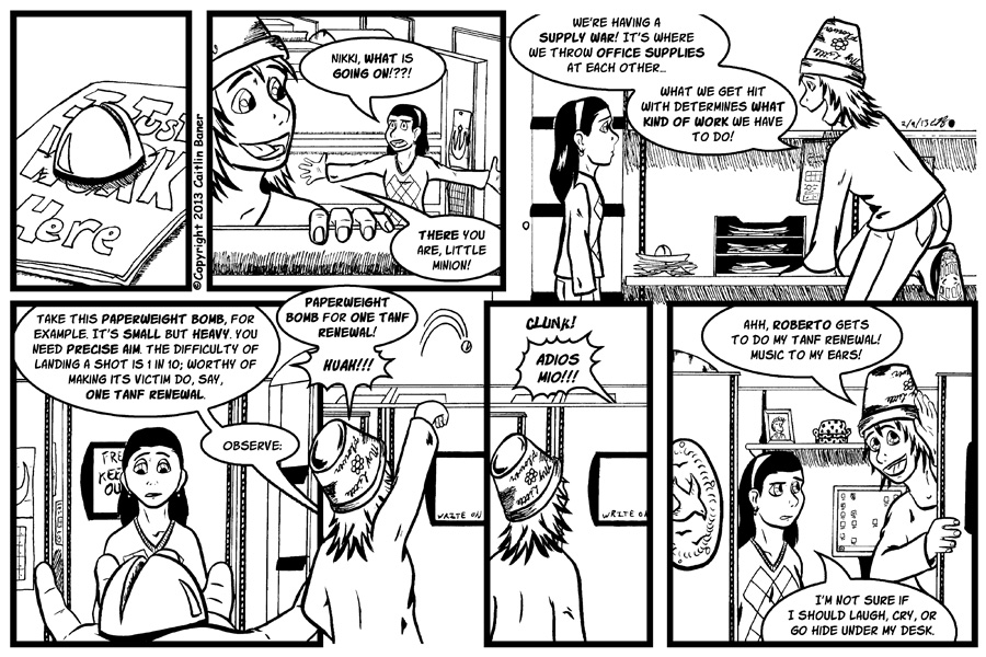 Continuing to try and create more dynamic panels... particularly such as panel five... the ability to make Nikki "jump out" of it was a surprise drafting idea, but I'll take it.