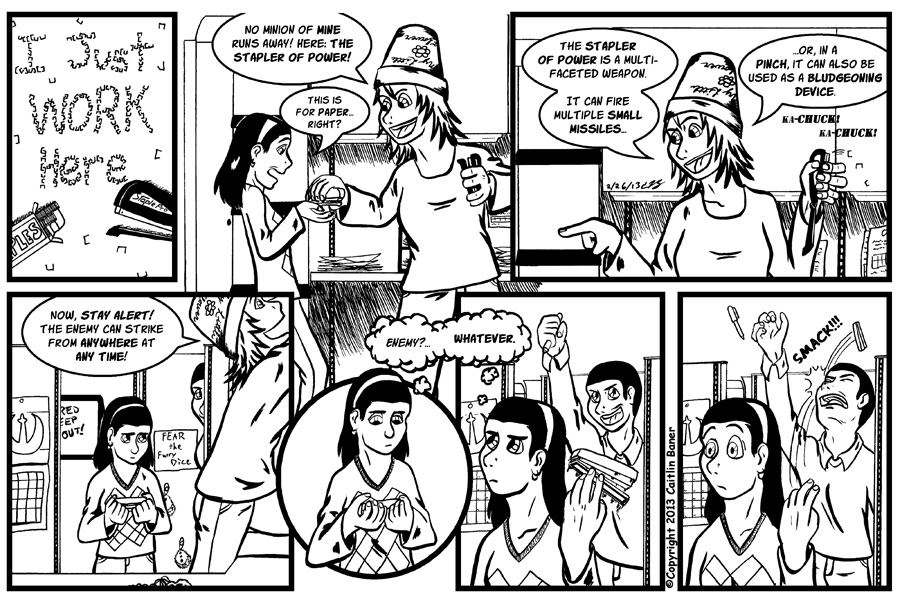 Of course, Nikki gave Javiera one of those super-heavy metal staplers...