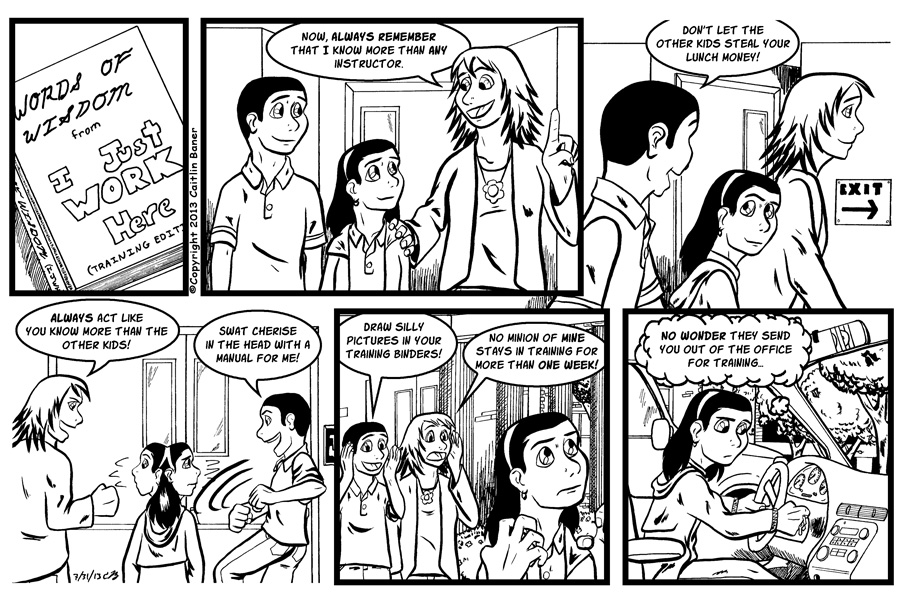 When I draw IJWH, I no longer write the dialogue in; after the page is scanned into Photoshop, I then add the text and speech bubbles, which means I have to strategically place everything so it's both legible and not blocking the characters' faces, so the background gets pushed to, well, the back. I'm finding myself going "Wait seriously? That took time to draw!" and subsequently doing my best not to cover the prettier background bits. I'm still trying to decide if my reluctance to have the backgrounds covered is a result of feeling my art skills are improving, or if it just means I'm vain.