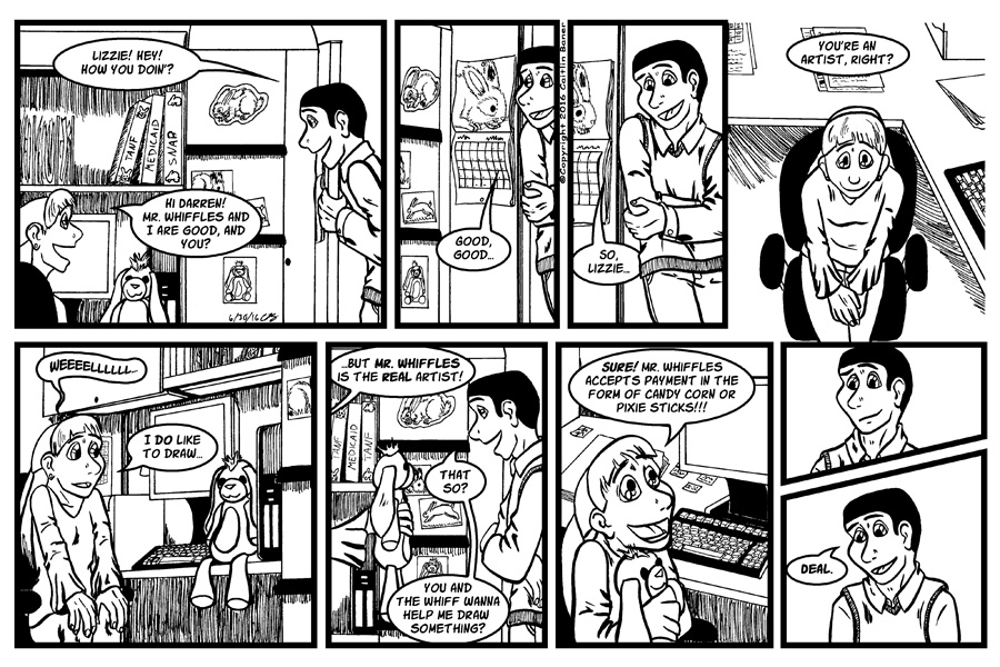 Lizzie is one of those characters that grows on me the more I draw her. I am hoping to write her into the stories more as the comic continues.