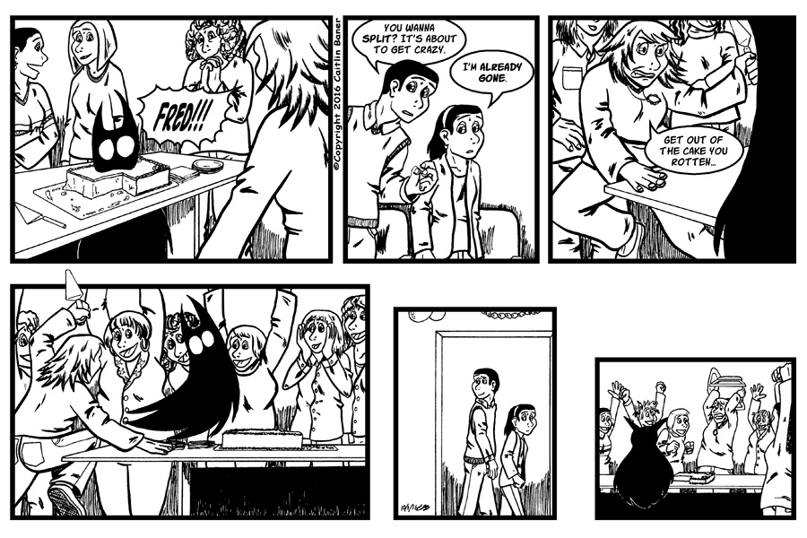 There was something hysterical to me about the idea that the highlight of office get-togethers somehow involves Fred ticking someone off and getting chased around gladiator-style. Everyone knows he can't be hurt, so it's all about the spectacle. 8]