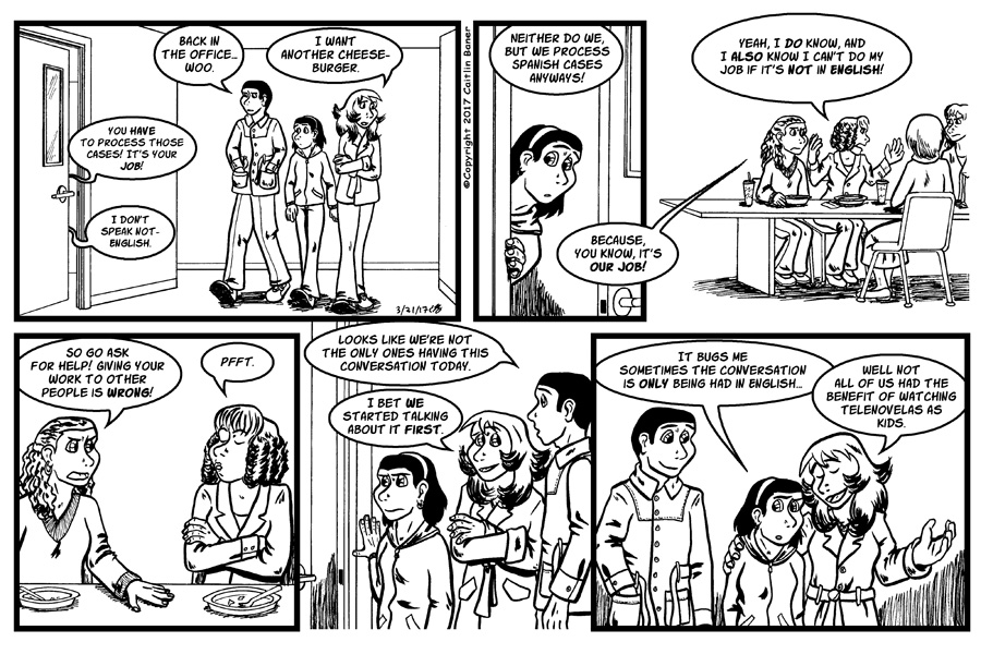 I have actually known people like Cherise who think it's okay to hand non-English cases off to other workers to complete. I work in the greater DC area, so we see lots of different languages, especially Spanish, Vietnamese, Dari, Arabic, Twi, and Korean. The county provides us with interpreter services, so there really is no excuse not to process these cases. Sure, it takes and extra minute to have to speak through an interpreter, and most people I know grouse about it because we all have so much work it's a pain to have to take the extra time. BUT, it's our job to take the extra time when we need to, and since we're provided with the tools we need to do our job, there's really no excuse to say you can't or won't process a non-English speaking case.